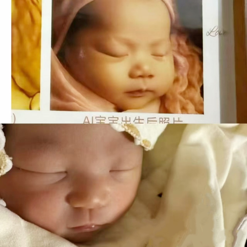 蓝湾医院朱琳院长收到一位宝妈发来的暖心对比图:孕期在本院完成五维大排畸时拍摄的胎儿AI成像,与宝宝出生后的真实照片高度重合。