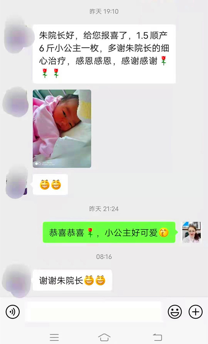 十月怀胎,一朝分晚。2021年新年刚过,1月5日,王梅顺产6斤可爱“小公主”一枚,满怀喜悦之情,王梅给朱琳院长发来微信报喜并表示了真诚感谢!